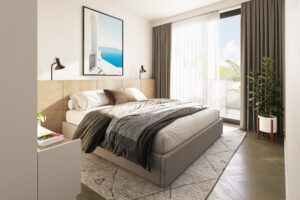 Het appartement beschikt over twee slaapkamers, een badkamer met toilet, een afzonderlijk toilet, een berging en een hal. De riante woonkamer/keuken is maar liefst 36 m2 en komt uit op het heerlijke ruime privé terras van 13 m2.