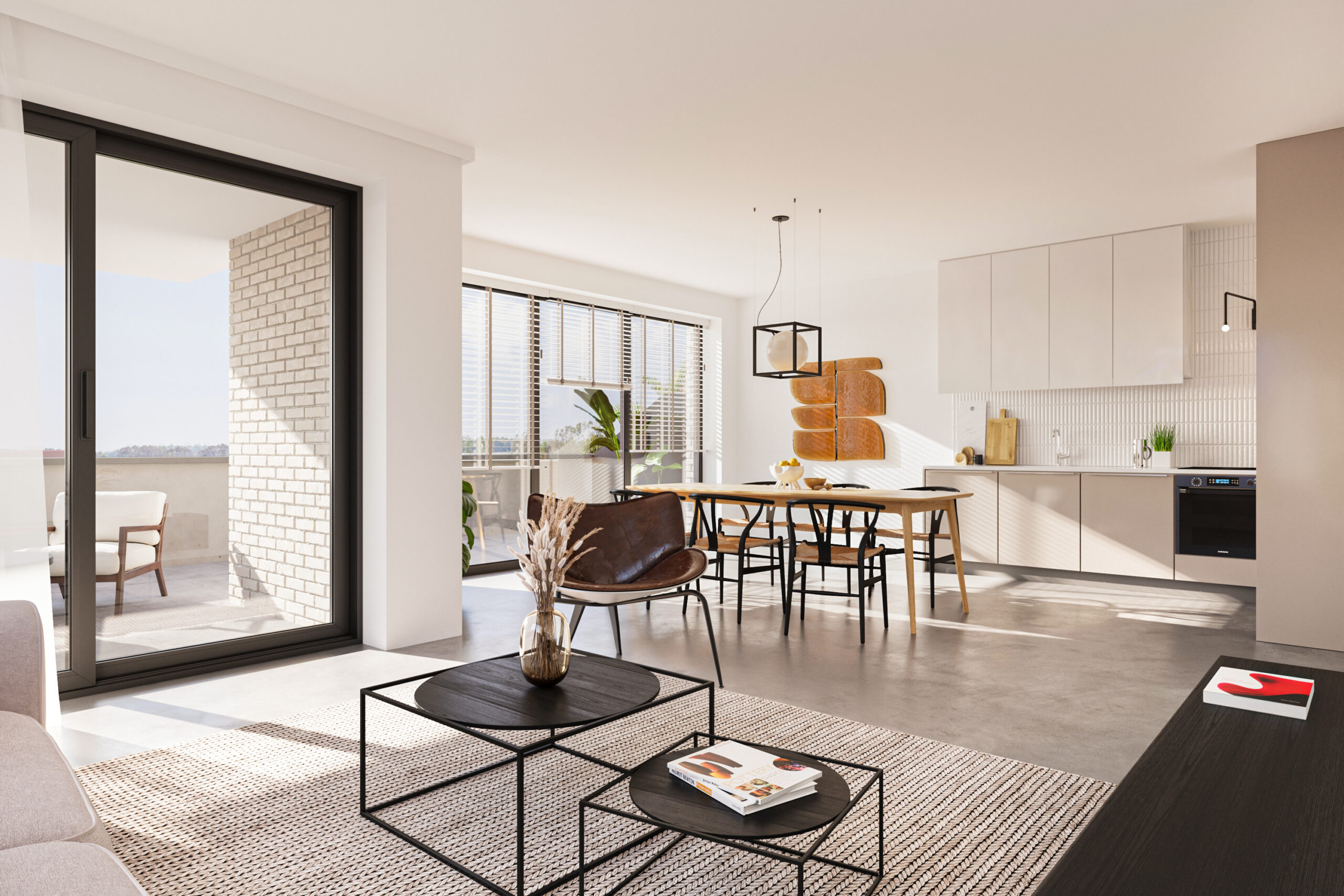 Wide View appartementen zijn ons paradepaardje en tevens de grootste appartementen, op de eerste en tweede verdieping met een enorm terras inclusief loggia en op de derde verdieping met een fijn balkon inclusief loggia.